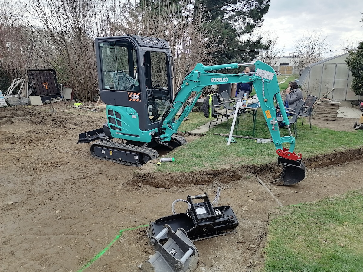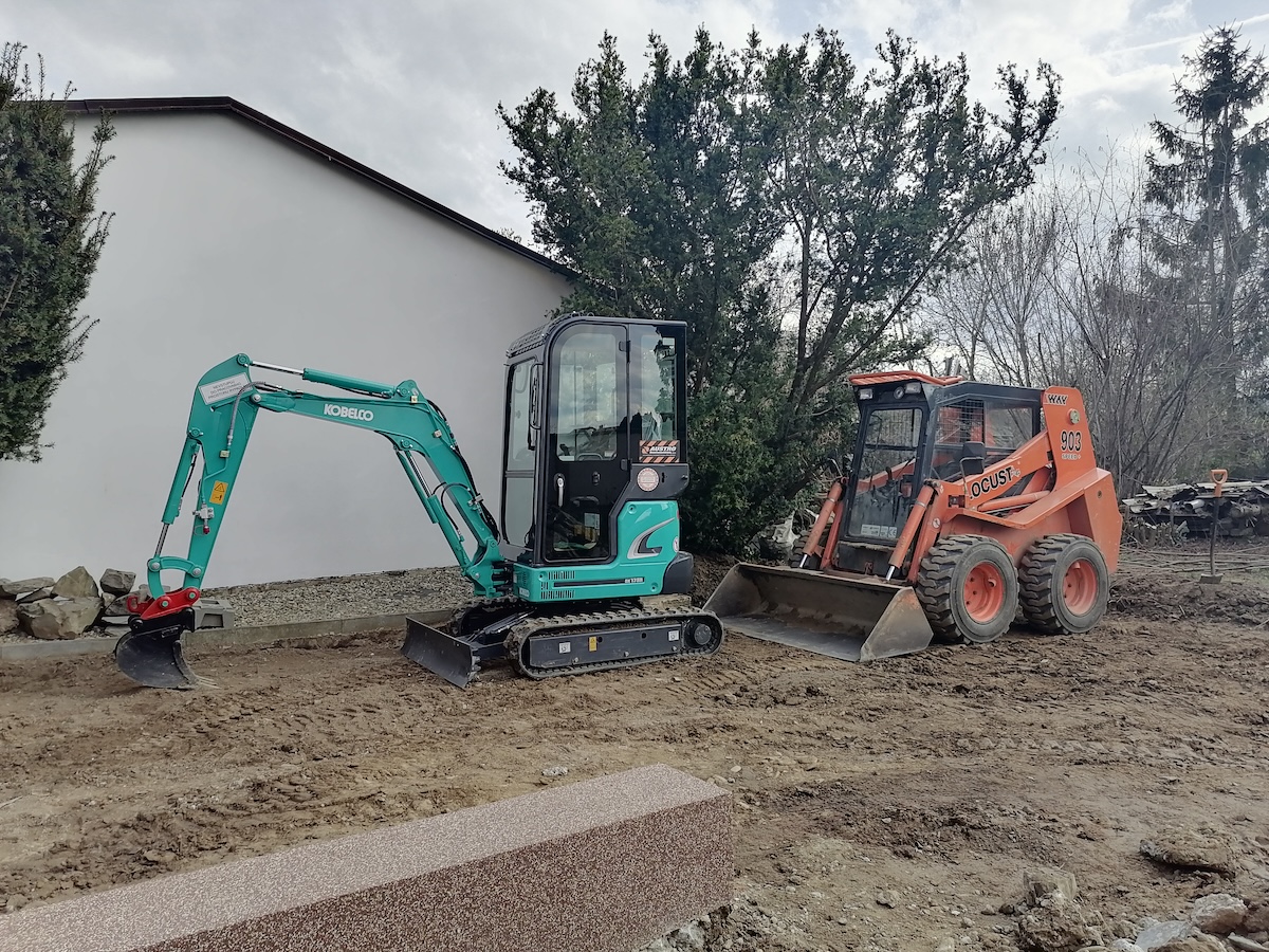 Kobelco sk17 je výkonný Japonský stroj, který je určený na práce do méně přístupných míst a na práce menšího rozsahu jako jsou například výkopy základů RD a garáží, terénní úpravy na zahradách, úpravy kolem staveb výkopy přípojek a inženýrských sítí. V případě použití vrtací jednotky jsme schopni vrtat díry pro sloupky na plot nebo třeba na piloty pro pergoly nebo jiné stavby.